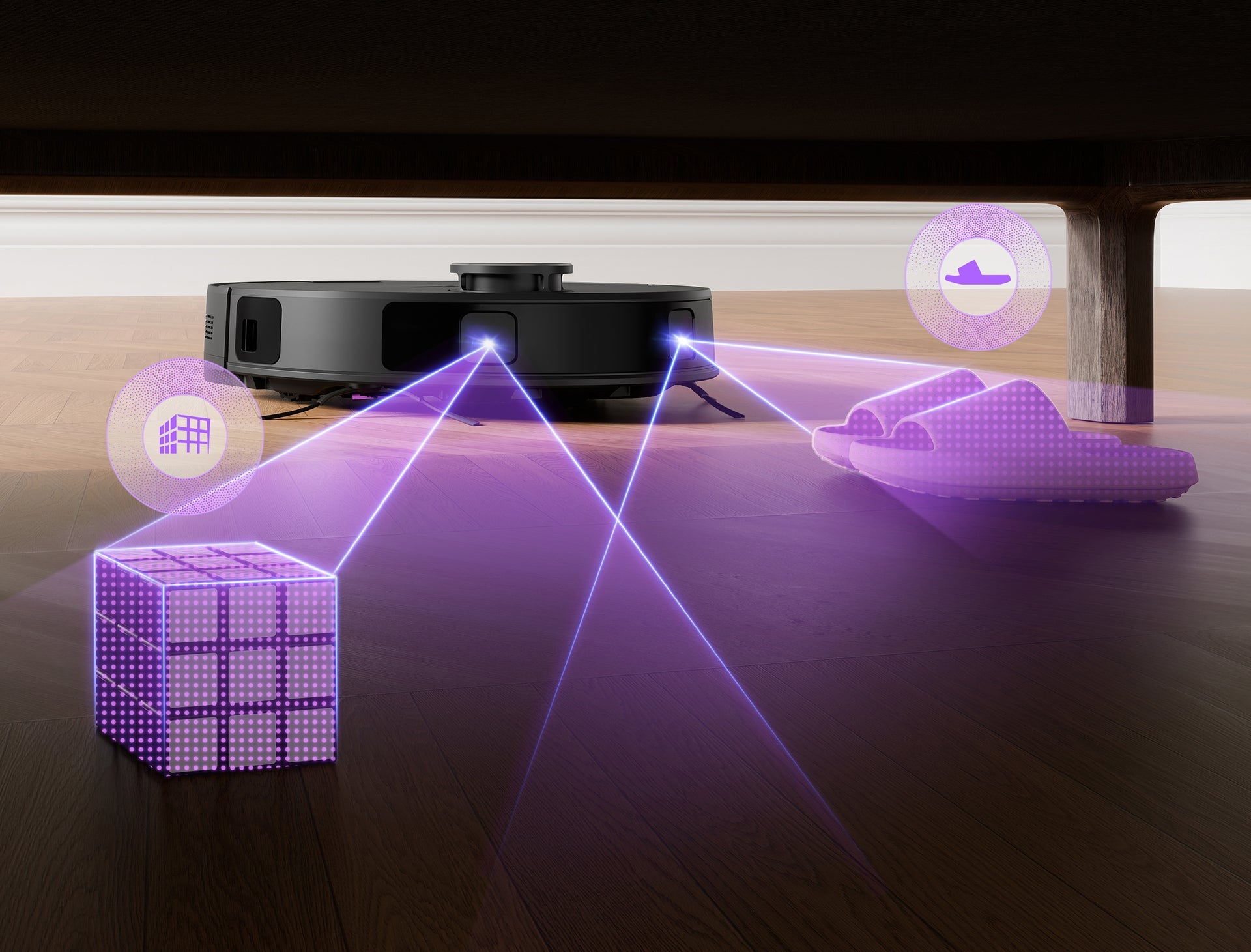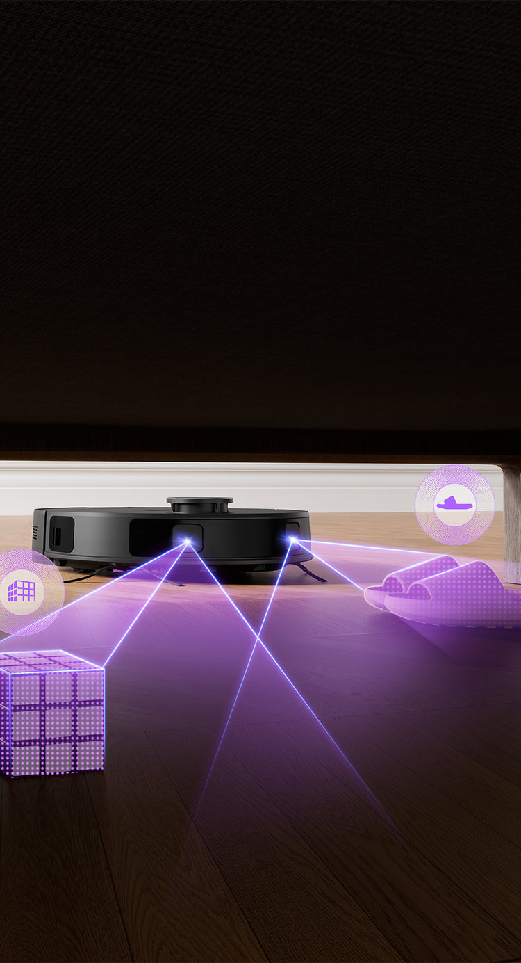 Avancerad DuoDetect AI™ 3D-teknologi för att undvika hinder gör att du kan anförtro roboten dina rengöringsuppgifter utan att behöva ingripa manuellt för att frigöra den.
