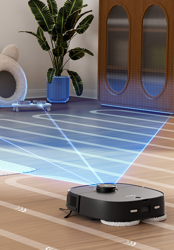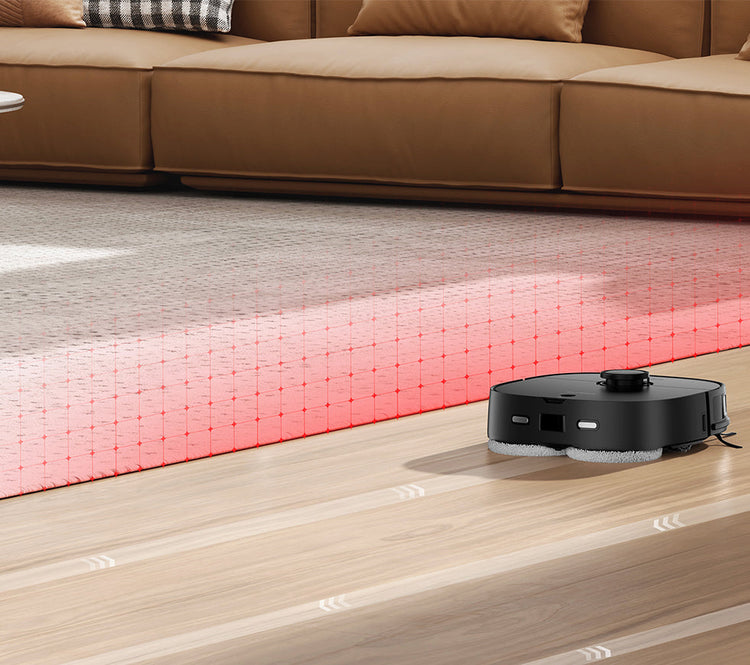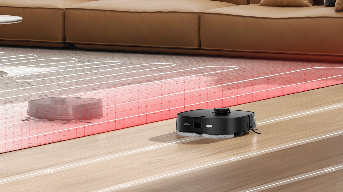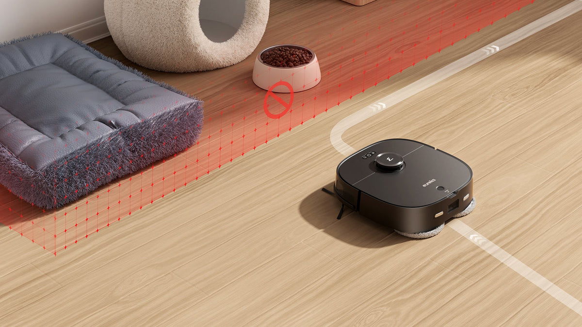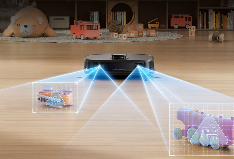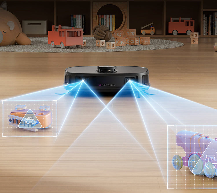 Med avancerad DuoDetect AI™ 3D-hinderdetektering upptäcker J12 Ultra intelligent möbler och hinder efter typ.
