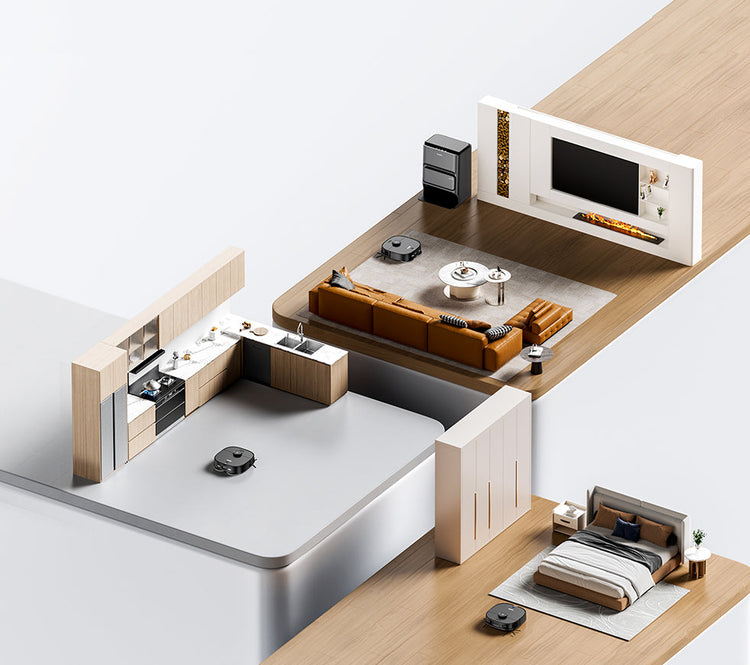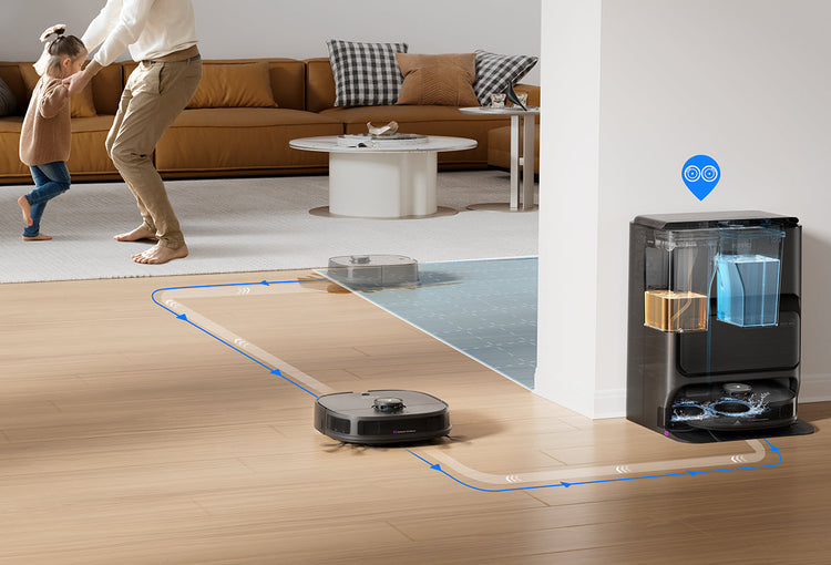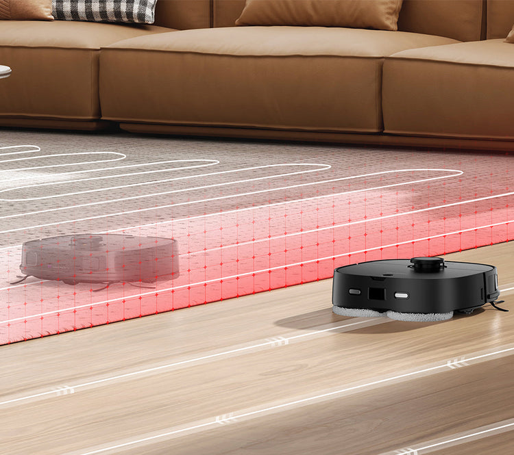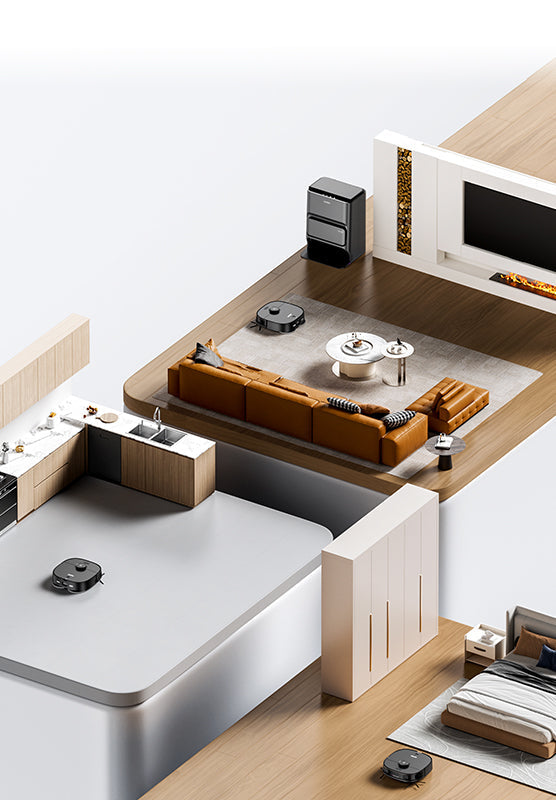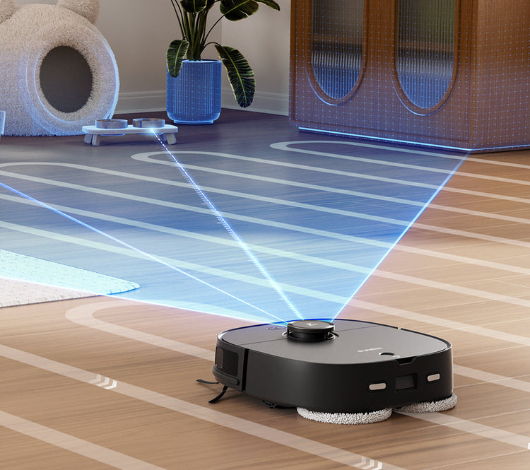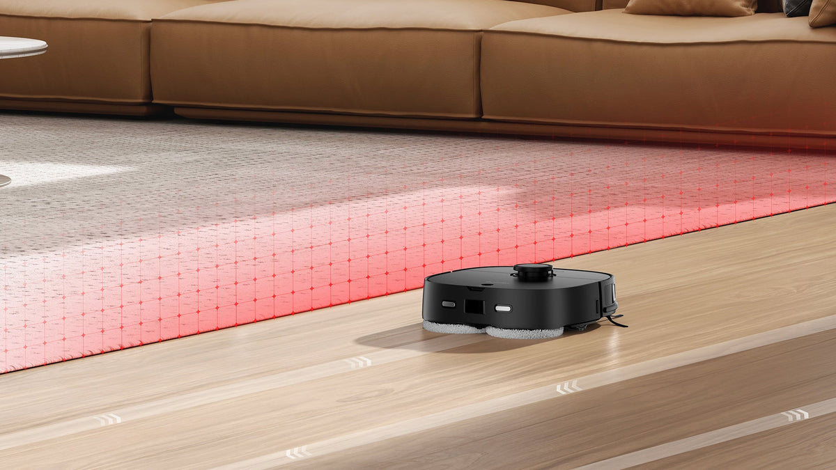 Med avancerad DuoDetect AI™ 3D-hinderdetektering upptäcker J12 Ultra intelligent möbler och hinder efter typ.