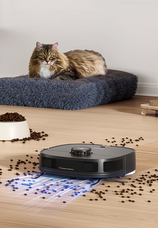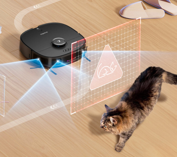 Med Super Sense-sensorer för att undvika hinder upptäcker J12 Ultra husdjur i realtid för att undvika dem och hålla ditt hem lugnt.