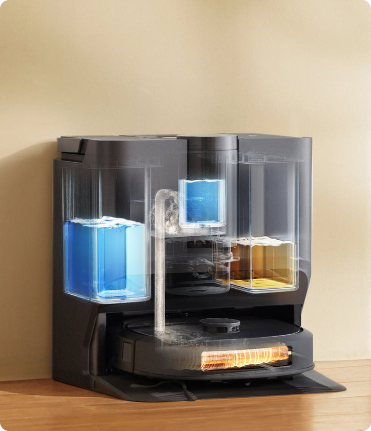 Den helt nya designen av den cykliska bältesmoppen är koordinerad med ett robotintegrerat dubbelt vattentanksystem för att kontinuerligt skölja moppen, ta bort smutsigt vatten och noggrant skura golv för att ge dig en felfri rengöring.