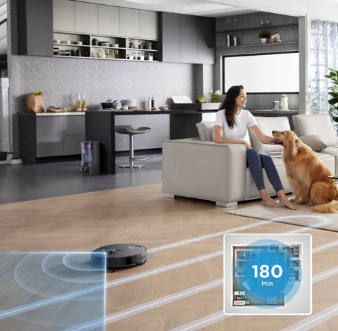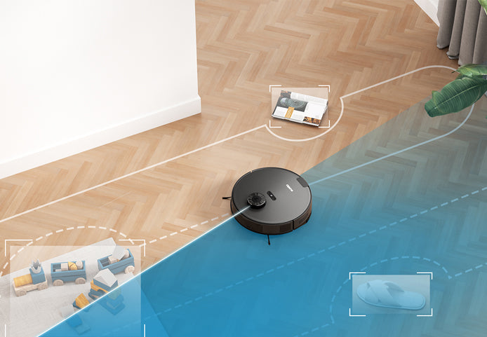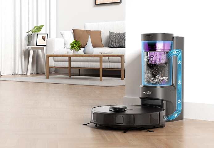 Tack vare LiDAR-navigering kartlägger Eureka E10s snabbt ditt hem och identifierar områden som ska städas för en mer effektiv städupplevelse.