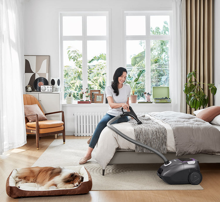 Vår dammsugare fångar effektivt upp 99,9 % av luftburna partiklar, vilket säkerställer en renare och hälsosammare livsmiljö. Det förbättrar tillförlitligt och effektivt luftkvaliteten och skyddar din familj från allergener och irriterande ämnen.